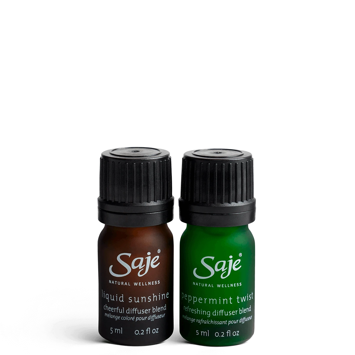 Brighten up your winter with this invigorating duo of Saje-signature diffuser blends. Sweet and citrusy Liquid Sunshine helps lift your mood naturally with our year-round best-selling blend of tart grapefruit, sweet bergamot, and zesty lime. Fresh and festive Peppermint Twist offers high-energy nostalgia via our signature holiday blend of sharp peppermint, juicy orange and vanilla-like balsam peru. Both community favorites refresh your space and state of mind.