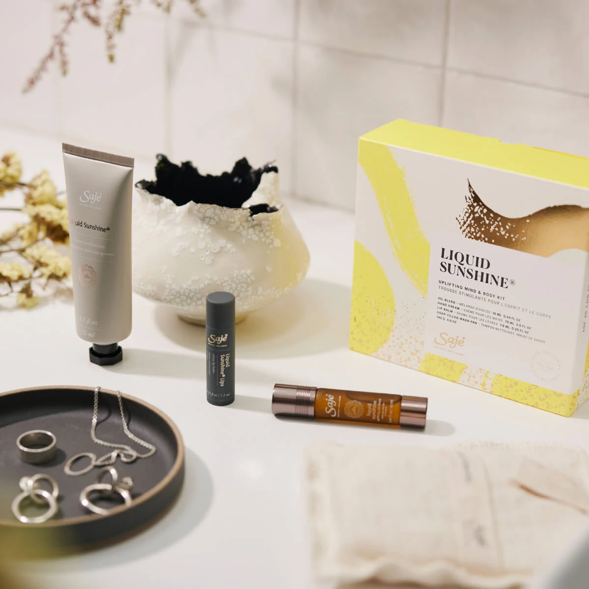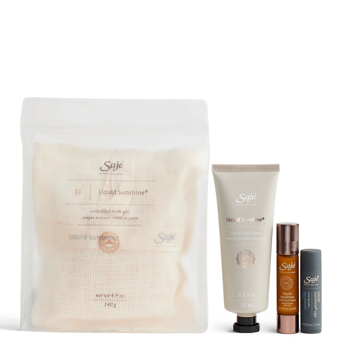 Here comes the sun. Happy holidays start with our best-selling, mood-brightening blend of orange, bergamot, and lime. This limited-edition collection includes four different formats of Liquid Sunshine: a roll-on, lip balm, hand cream, and soap-filled wash pad—a joyful, sunshiney state of mind is within reach all day, everyday.
