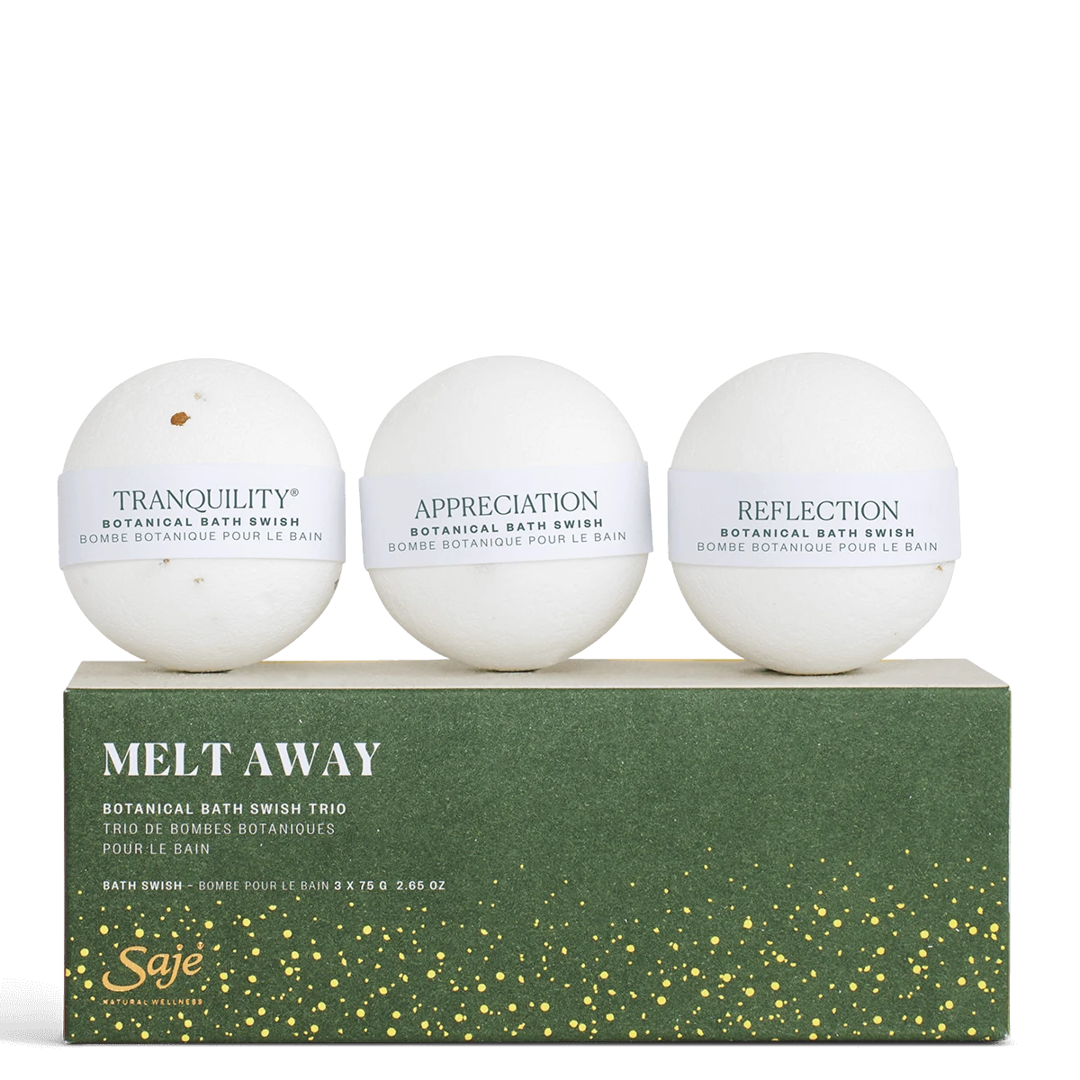 Have yourself a merry little bath time with three handmade, skin-nourishing, and soul-soothing, bath swishes. Reflection invites you to turn your attention inwards with compassion. Appreciation reaveals the extraordinary in everyday moments. Tranquility encourages your body and mind to wind all the way down. Soak it all in while effervescent suds, dried botanicals, and a surprise love note fill your tub and senses up.